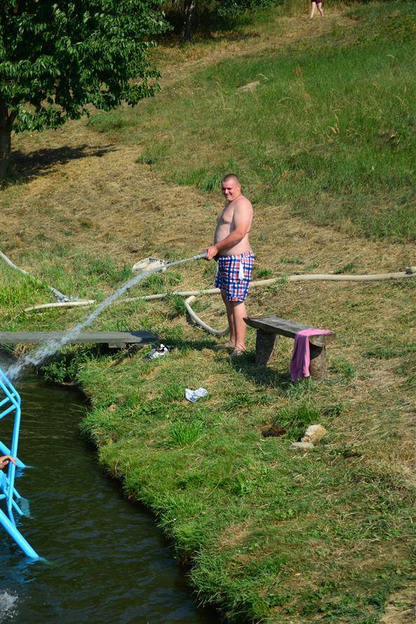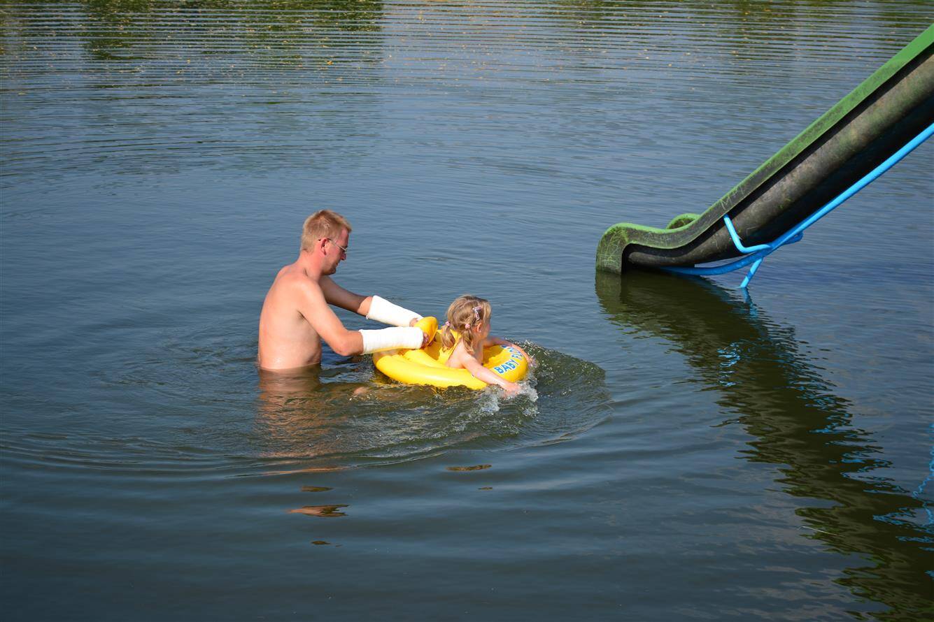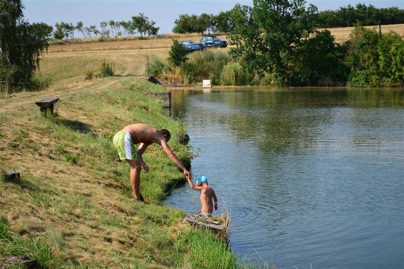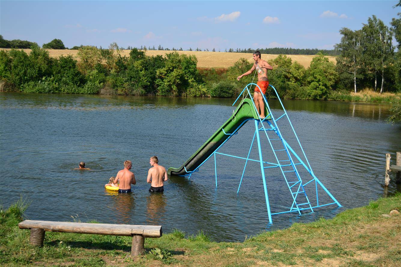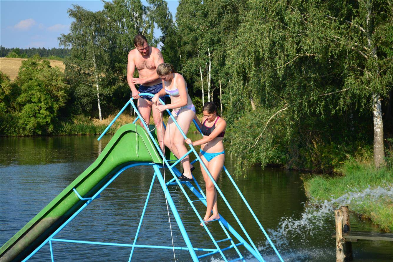 Umístění skluzavky do rybníka Žleb 2015